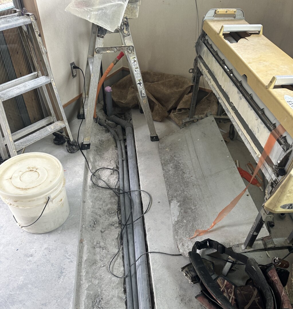 現在は床をはつって配管を移設、オシャレな洗面台も装着します