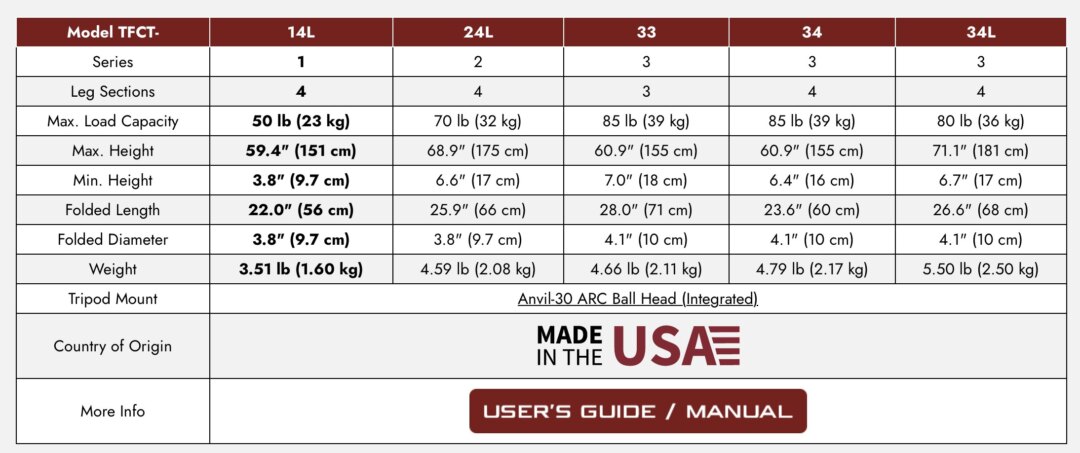 具体的には1シリーズには最初に紹介した14Lがありボールヘッド込みで1.6kgと超軽量コンパクト