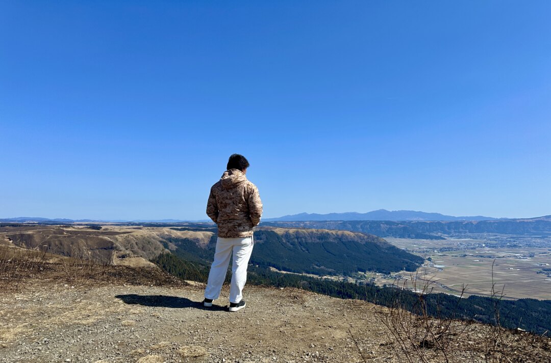 阿蘇の大観峰が初めてらしく感動で黄昏てます